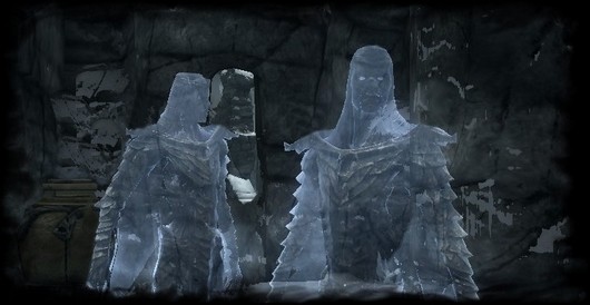 "My ale hledáme přátele, kteří se nám ztratili," klesl na kolena False. "Vaše výmluvy jsou ubohé," vybuchl duch a ostrá bolest projela Falsemu hlavou. "Opravdu, prosím," procedil skrz zaťaté zuby False. "Nechtěli jsme vás rušit a s těmahle nemáme nic společného," a vyčerpaně ukázal na dva ležící mrtvé nekromancery. "Vyvraždili celé městečko Greenwall a s námi chtěli udělat to samé, když jsme se tam přišli. Své oběti mučili a chovali je jako pokusná zvířata." Při zmínce o Greenwallu se oba duchové zřetelně zachvěli a venku v davu to zahučelo.